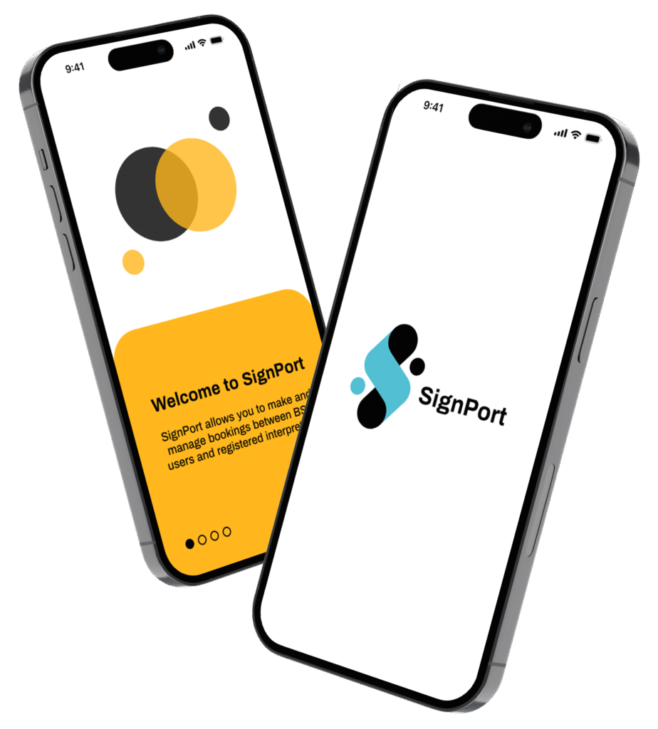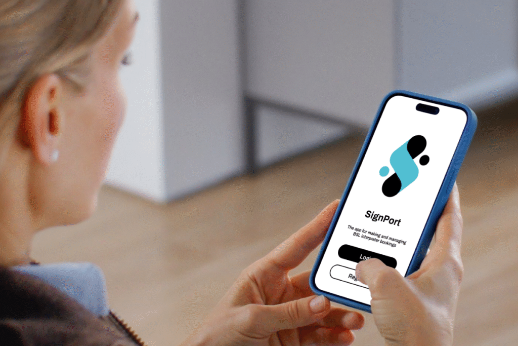 ‘SignPort’, launched today (30 October), streamlines the process for organising interpreters, and lets the Deaf person know instantly via a notification on the app that an interpreter has been booked for them . This gives deaf BSL users more confidence showing up for appointments with medical professionals, education services, employers and other essential service providers.